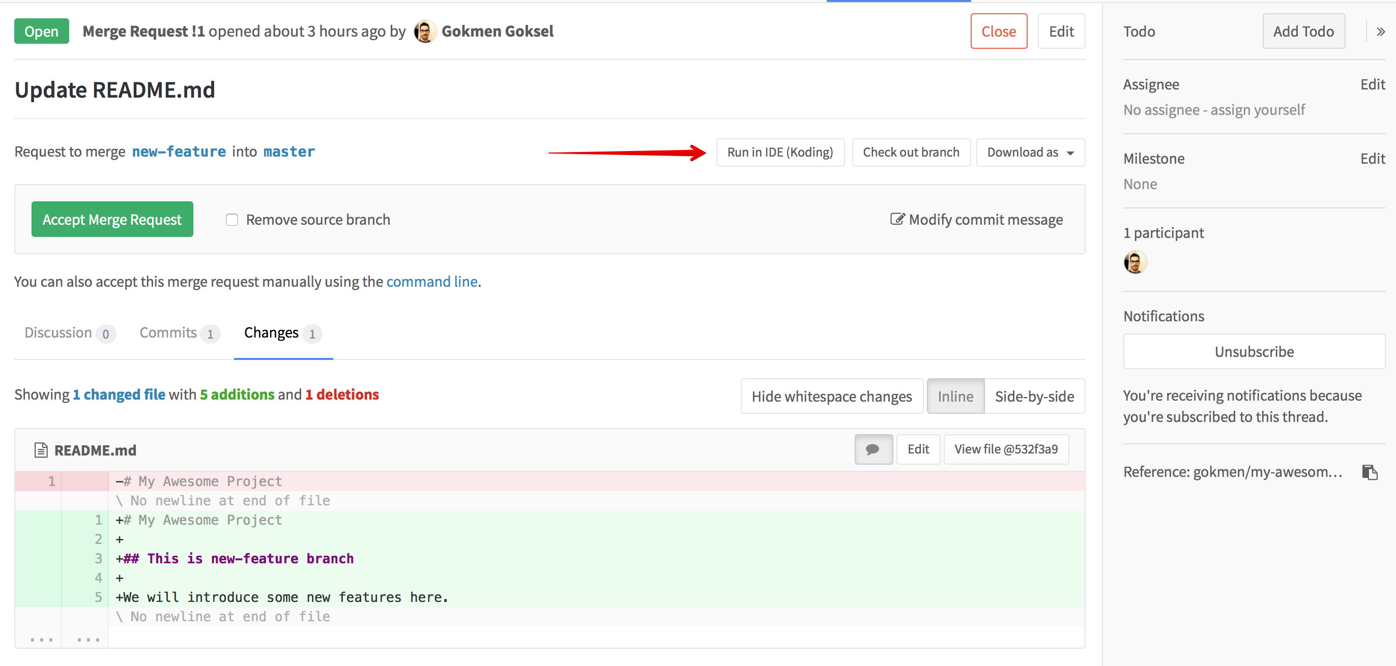 Try a Merge Request on IDE