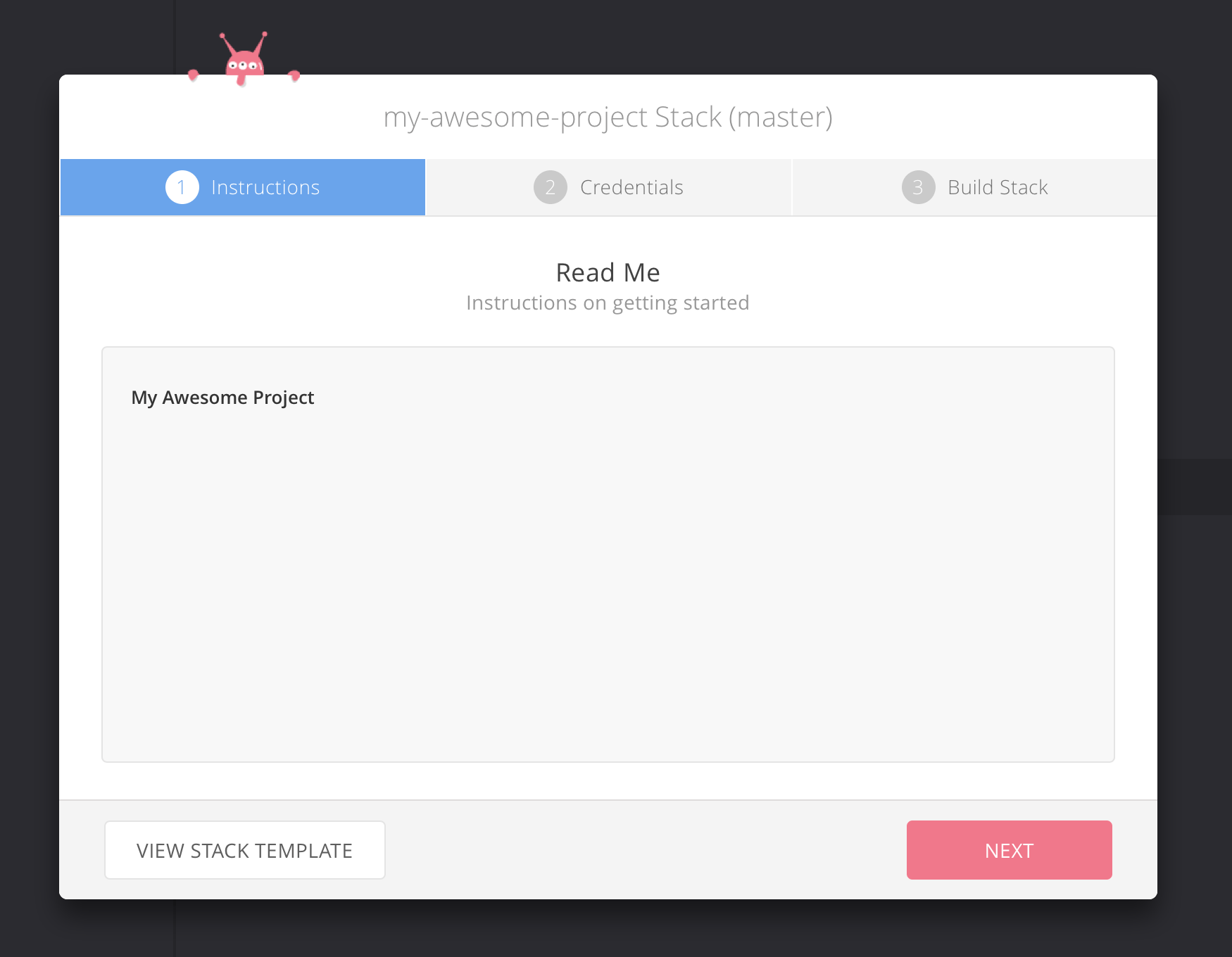 Once stack initialized you will see the README.md content from your project